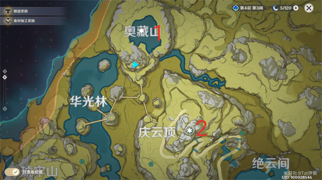 2、接取任务之后,要求去最高的仙人居所下图2的位置拿图纸(需要已经激活三个鸟开启过仙人故居)