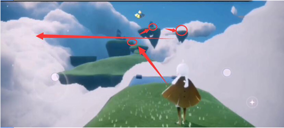 位置所在地:穿过右侧的云洞,能看到远处三个浮岛,在中间的浮岛上可以遇到第二个先祖。具体图解如下: