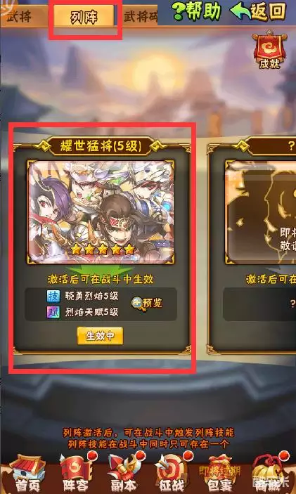 首页-武将-列阵页签,即可看到【耀世猛将】图鉴啦。